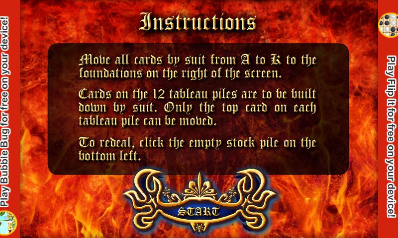 المحاربين القدامى Solitaire ، حان الوقت لإثبات حوزتك للموهبة والثروة في Cruel Solitaire ! هدفك في هذه اللعبة هو تحريك جميع البطاقات بواسطة بدلة من A إلى K إلى المؤسسات. عندما تبدأ اللعبة ، سيتم نقل جميع ACEs الأربعة إلى الأسس الأربعة الرأسية على يمين الشاشة. ثم سيتم التعامل مع كل من أكوام Tableau الـ 12 في الوسط 4 بطاقات للوجه. يوجد كومة مخزون فارغة في أسفل اليسار. يجب أن يتم بناء أكوام Tableau بواسطة بدلة ، وفي كل مرة يمكن نقل البطاقة العلوية على كومة Tableau فقط. إذا أصبحت كومة Tableau فارغة ، فلا يمكنك وضع أي بطاقة عليها. إذا كنت ترغب في إعادة بيع البطاقات أو إذا نفدت التحركات ، فانقر فوق كومة المخزون الفارغة. بعد ذلك ، سيتم جمع جميع البطاقات على أكوام Tableau بدءًا من الكومة الأخيرة في أسفل اليمين إلى الكومة الأولى في أعلى اليسار. سيتم بعد ذلك التعامل مع البطاقات التي تم جمعها إلى أكوام Tableau مرة أخرى دون خلط ورق اللعب ، بدءًا من الوبر الأول في أعلى اليسار ، مع تعامل كل كومة 4 بطاقات للوجه حتى يتم التعامل مع جميع البطاقات. عدد إعادة البيع غير محدود ، ولكن إذا لم تتمكن من القيام بخطوة واحدة على الأقل بعد إعادة البيع ، تخسر. هل ستتمكن من حل اللغز المتقدم بنجاح؟